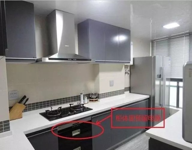 現代人更加注重生活品質,在裝修廚房時都是定制整體櫥柜,像凈水器、嵌入式洗碗機、嵌入式消毒柜都需要電源供電。即使你現在沒用到這些電器,但保不齊你以后不添置,可以說這個位置預留絕對是有必要的。