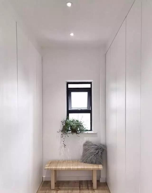 感應式衣柜燈,在衣柜縱向空間的抽屜或褲架背后預留一個插座,從此衣柜開門即亮。其次在兩排衣柜中間的墻上留個五孔插座,供掛燙機、電熨斗等使用。