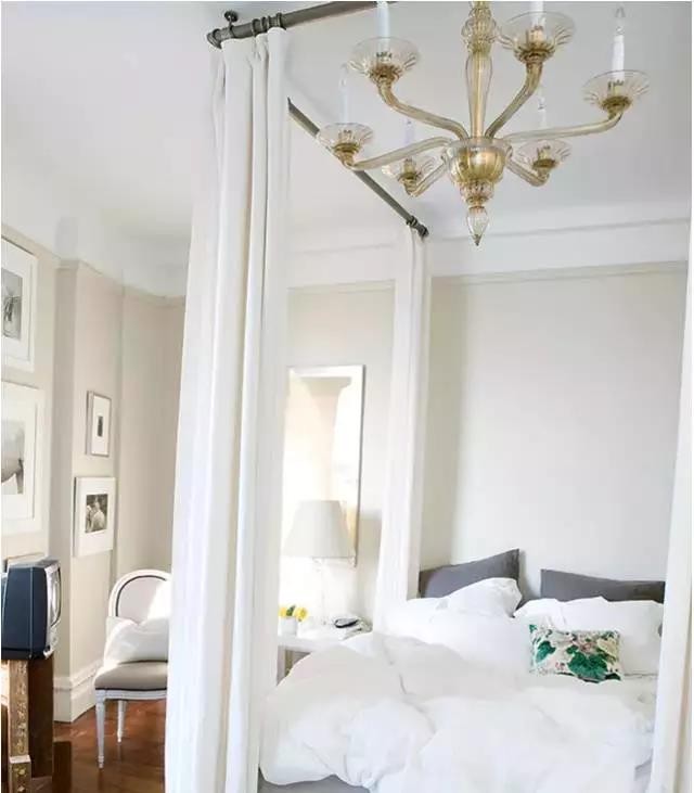 ▲只要兩根窗簾架圍起來,再掛上自己喜歡的任意顏色的布幔或蕾絲,自制頂篷床就搞定了,預(yù)算低了不止幾倍,效果一樣美麗哦。