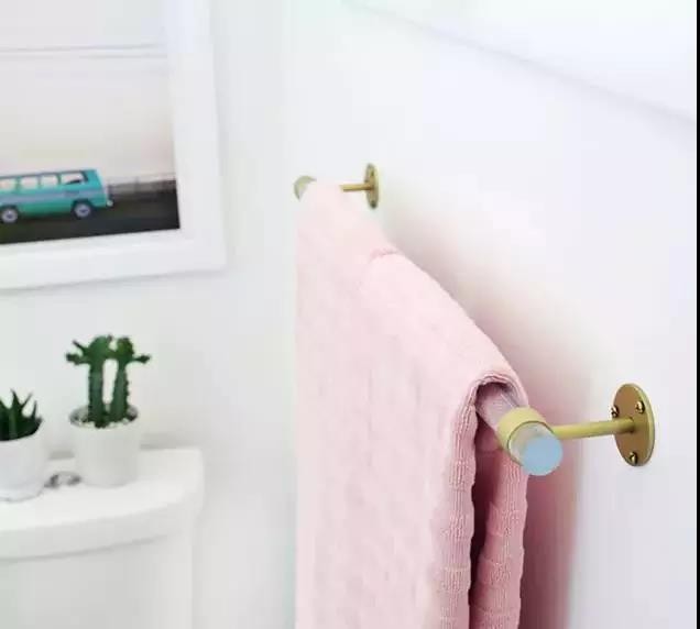 ▲浴室中使用窗簾桿的另一個(gè)小妙招是建一個(gè)毛巾架,比掛鉤看起來更有質(zhì)感,將透明桿與支架組合起來,有一種混搭美,根據(jù)需要想DIY幾個(gè)都可以。