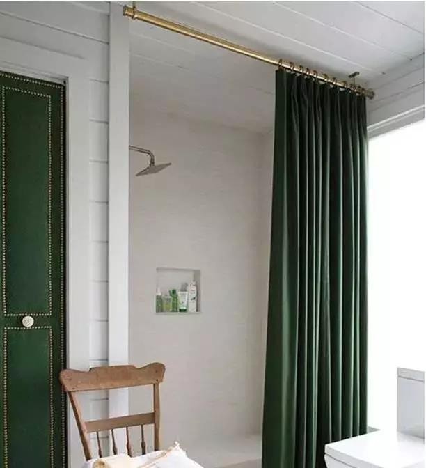 窗簾架掛在浴室應(yīng)該是時(shí)下很流行的一種用法。很多衛(wèi)生間都有懸掛浴簾的需要,這時(shí)候不妨使用一根釘在天花板上的窗簾桿就能很好的解決問題,省去了在墻磚上打洞的麻煩,自己動(dòng)手DIY也很簡單。