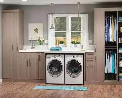 在設(shè)計(jì)一個(gè)家庭一站式洗衣間時(shí),首要事情就是選擇合適的位置,通常,家里有地下室的小伙伴可能會(huì)將地下室改為洗衣房。其他的或是選在衛(wèi)生間旁邊,這樣洗完澡就可以直接把衣物扔進(jìn)洗衣機(jī)清洗,省時(shí)省力;或是把洗衣間裝在廚房和陽(yáng)臺(tái)。洗衣間采光好也是很重要的,若是在陽(yáng)面的話晾曬也可以一步解決。