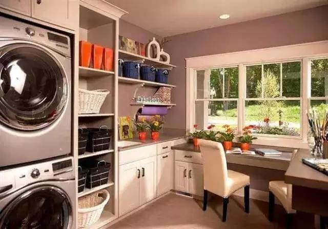 除了些大家都能想到的地方,多功能,符合人體工程學(xué)且方便的洗衣房可以配備在房子最意想不到的的角落。不過(guò)在這種情況下,洗衣房要像主臥一樣重視風(fēng)格和設(shè)計(jì)。異想天開(kāi)一點(diǎn)兒,洗衣機(jī)安裝在書(shū)房也是可以的,只要能正常進(jìn)行清洗流程。清洗的地方可以很容易的與工作空間隔開(kāi),用漂亮的門(mén)、窗簾、屏風(fēng)或滑動(dòng)隔板都可以。