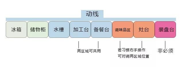 其次是冰箱擺放的位置問題。冰箱如果擺放在廚房,應優先考慮冰箱——水槽——操作臺——燃氣灶——備餐臺的排列順序。一條線搞定,操作方便。若是擺放在客廳,可考慮廚房、客廳和玄關之間的位置,這樣看電視拿飲料和做飯取食材都比較方便。