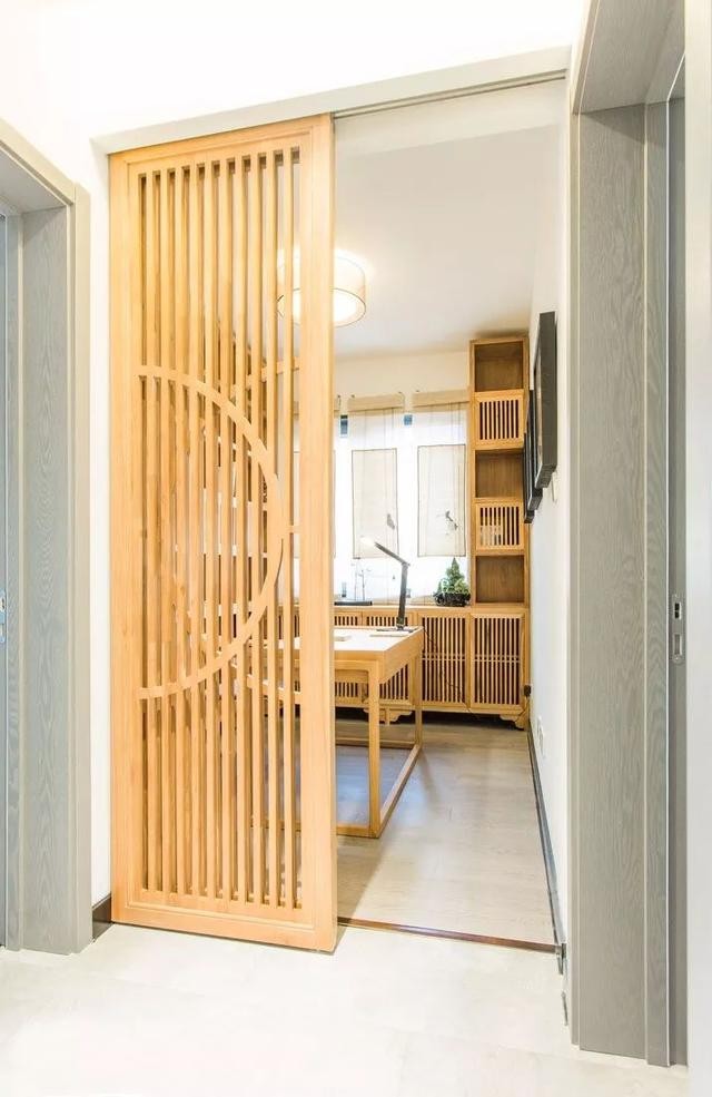 推拉門隔斷應該是用的比較多的一種隔斷方法,隔而不斷,拉開關閉都很隨心,隔斷效果也不錯。