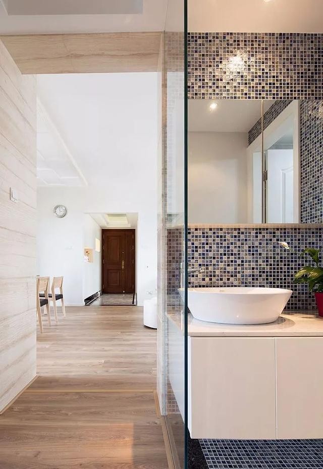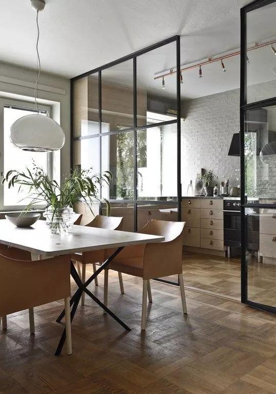 對于喜歡有明確隔斷效果又不高興砌墻的朋友,玻璃隔斷則是一個很好的選擇。隔音效果和隔斷感都比較強,同時又因為玻璃的材質讓家里看起來依舊通透明亮。