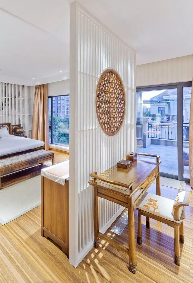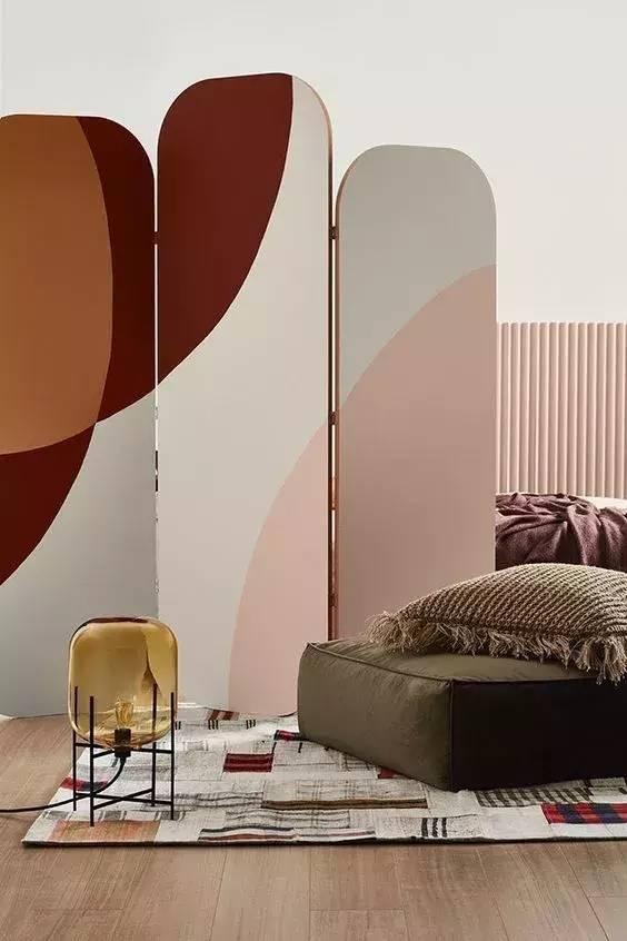 如果不喜歡擺個諾大的柜子,或者空間有限,那么就可以考慮放個小屏風隔一隔空間,貌美的屏風隔斷絕對能為你的空間增添不少姿色 ~