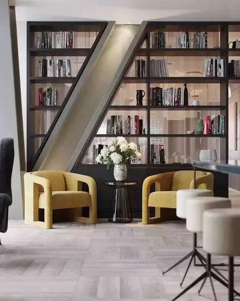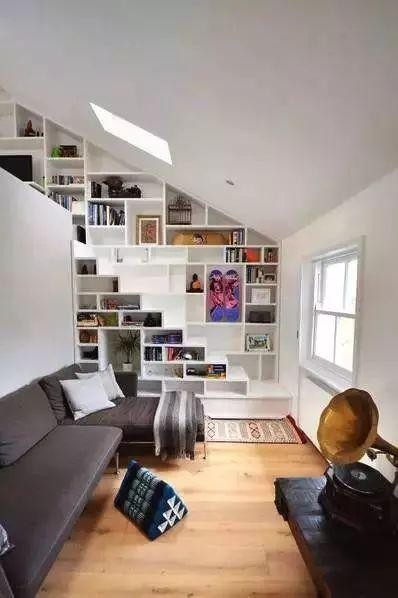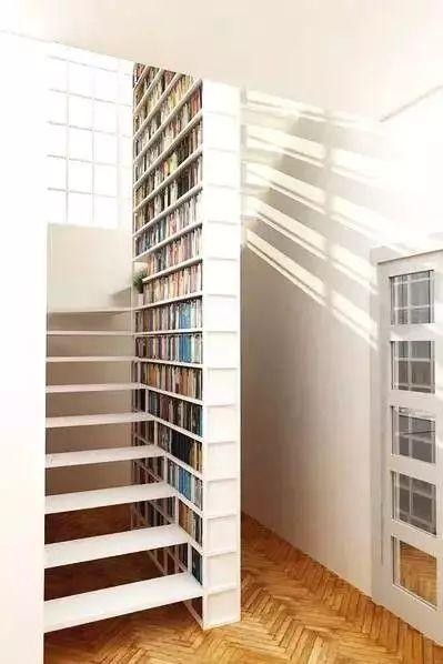 充分利用樓梯空間,讓藏書量突破一千本,臺階還能坐著閱讀,還省下了梯子。