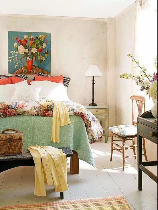 花卉是美式田園風格中極具代表性的元素,不管是床品還是沙發、靠墊,各種紡織品都會帶有大面積的花卉圖案,那些清新樸實的氣息,看上一眼就有自由奔放、溫暖舒適的感覺。
