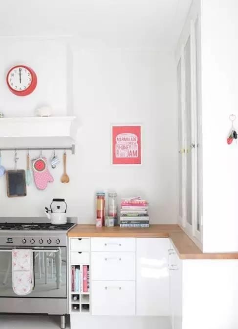 廚房死角很多,很多女主人覺得廚房少了收納,這樣的上墻設計如何?不用買置物架掛著,直接用隔板,不僅簡單,還美觀。