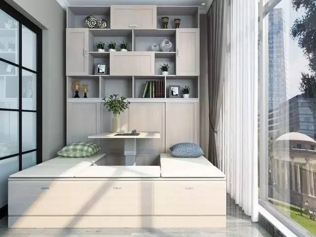 這是一個組合式的榻榻米設計,陽臺太大,想要晾衣服又想做成休息區域,可以選擇這種設計喲。暖暖的陽光照射進來,是不是很美呢?