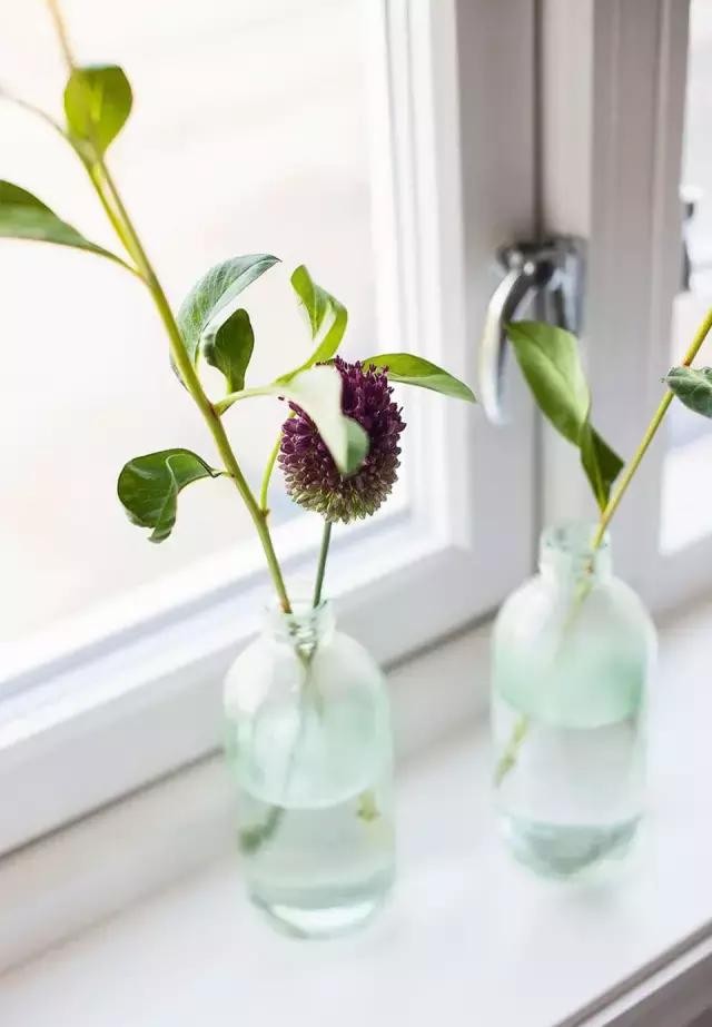 玻璃花瓶購自H&M Home,而那一抹綠色則來自自家陽臺上的某一株綠植。