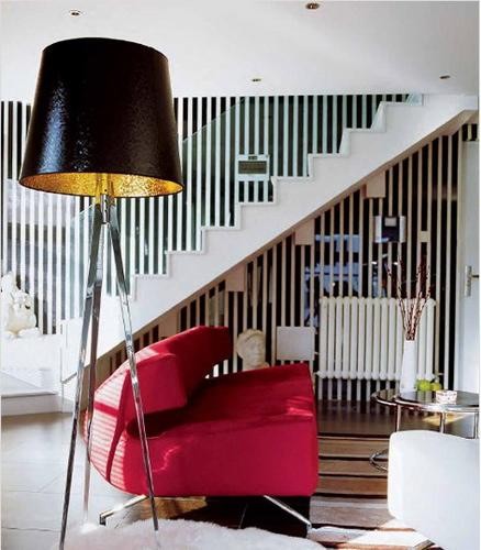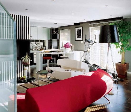 造型獨特的紅色沙發,活躍了空間氣氛,讓空間不再單一,呈現外向歡快的一面。