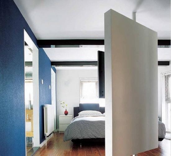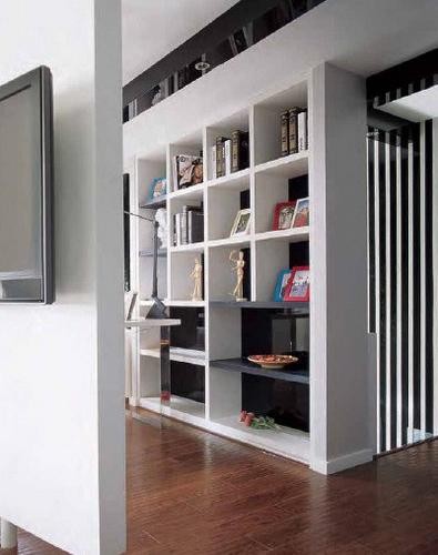 空間小并不代表不精彩,一道轉墻的設計成為二層空間最大的亮點。分隔書房與臥室空間的是兩道半墻,其中一道可以自如旋轉,關閉時,兩個空間各自獨立,看電視的與看書的各不影響;而打開時,兩個空間相互貫通,隔離而不疏離。