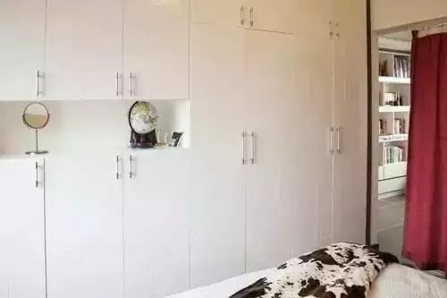 臥室一側是整面墻的巨大衣柜,柜門一關,很大程度阻擋了水汽的入侵,有效防灰防塵。