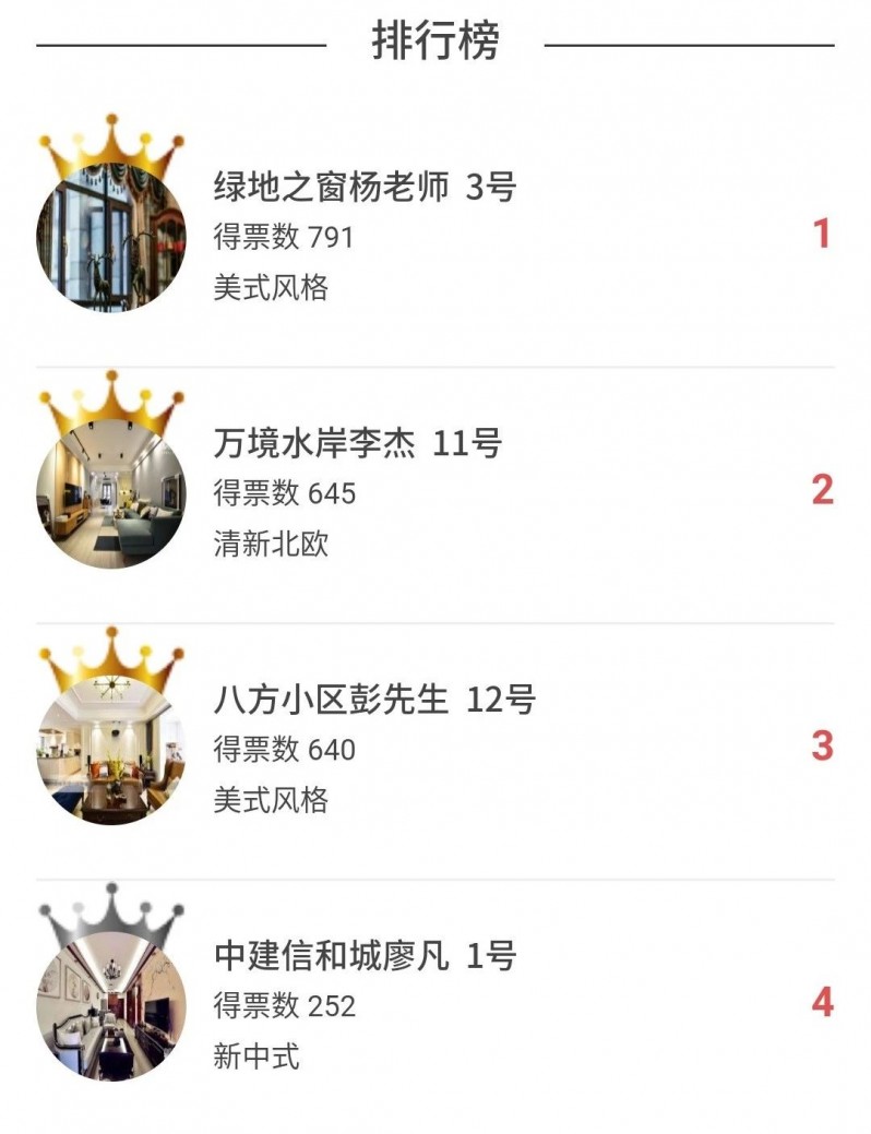 本次的人氣美家投票評(píng)選在7月14日24點(diǎn)就圓滿結(jié)束啦,感謝大家積極參與呀,現(xiàn)在到了最激動(dòng)人心的一刻,公布獲獎(jiǎng)名單,讓我們一起來(lái)看一下哪六位業(yè)主將會(huì)獲得本次活動(dòng)的獎(jiǎng)品呢?請(qǐng)看下方小屏幕?
