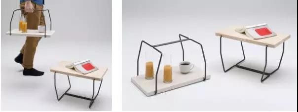 此款正反兩用,正面是一件茶幾,同時,放在上面的飲料杯等洗滌,反過來變可以輕松、方便地拿進廚房,當然,也可以盛放諸如飲料等便于短途攜帶的東西。