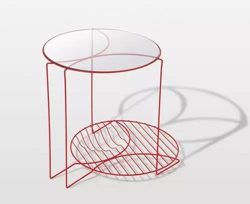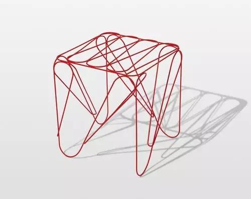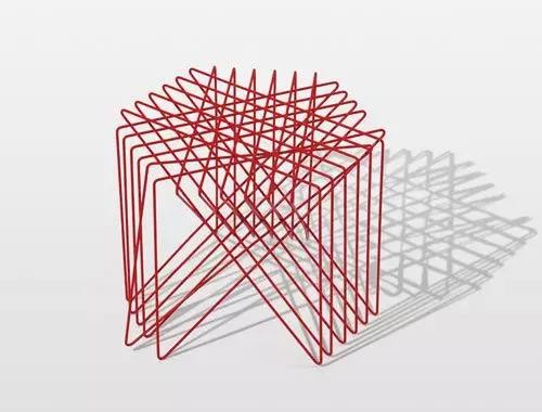 使用紅色鋼條作為材料,18根5種角度的線條穿梭而完成,傳統工藝品白檀籠的制作啟發。