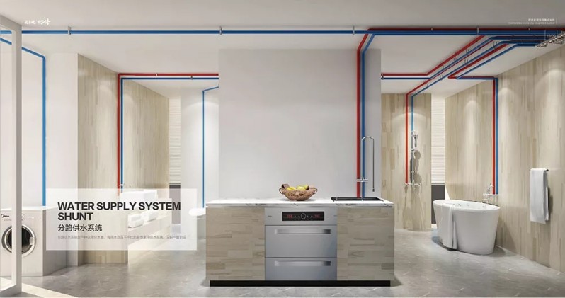 在進行水路改造時,首先確定好水管的走向,并且盡量地減少在水管的連接中使用彎頭。保利管道分路供水系統,各用水點互不干擾,一管到底。采用柔性塑料管,直接從分水器分到各龍頭用水點,這種中途不分支的管路系統施工方法,會為您的家帶來更多便利。