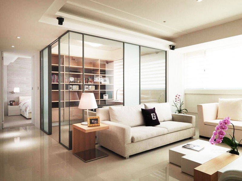 ▲玻璃門是比較常見的隔斷方式,優點在于玻璃的透明不會影響被分割的兩個空間都能有很好的采光,尤其以細窄邊的框架更顯秀美。