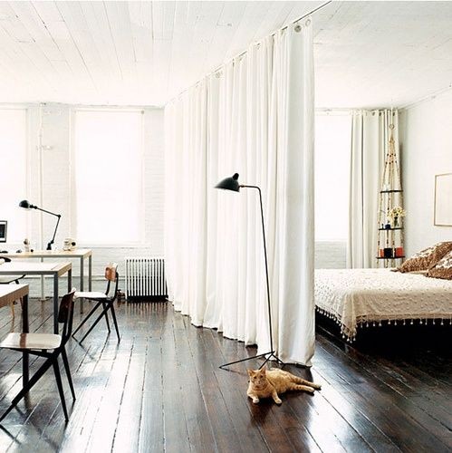 ▲僅運用布簾,隔斷臥室空間的同時,和墻壁打造一個步入式衣櫥,造價相當有誘惑力,適合臥室縱向較長的臥室。