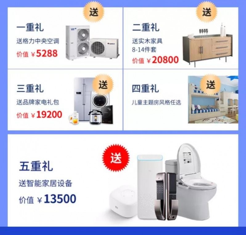 五重豪禮免費(fèi)派送 中央空調(diào)、全房家具家電、智能大禮包、兒童房