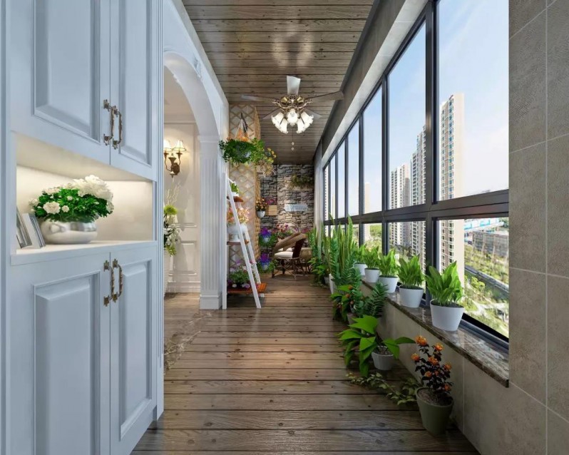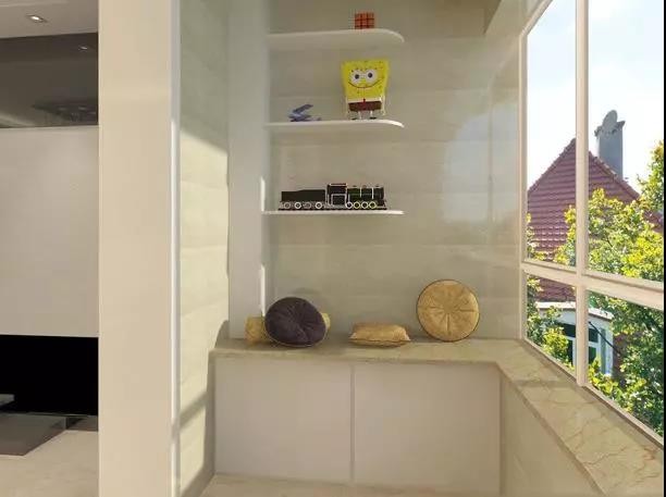 如果是緊靠廚房的生活陽(yáng)臺(tái),還可利用陽(yáng)臺(tái)的一角建筑一個(gè)儲(chǔ)物柜,存放一些蔬菜食品或不經(jīng)常使用的物品。供休息、餐飲使用的陽(yáng)臺(tái),也可以擺放少量的折疊家具