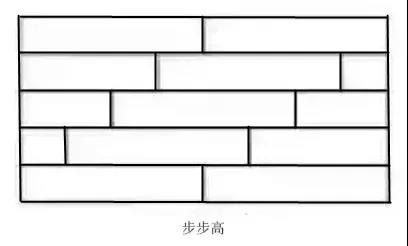 它與工字鋪最大的區別就在于,工字型的對稱更為嚴謹,而步步高的起點則比較隨意。但兩者都具有視覺效果簡潔明了、工藝簡單、材料損耗少的優點。