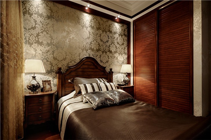 歐式的裝修風格中有一個很明顯的特點就是應用漂亮的墻紙(墻布)來裝飾房間,以替身整個房間的奢華美艷感。臥室的背景墻確實非常浪漫。