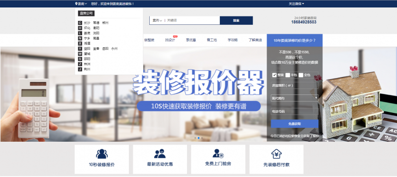 目前網(wǎng)站覆蓋地區(qū)有:常德、株洲、懷化、衡陽、郴州、湘潭、益陽、岳陽、瀏陽、婁底、望城、寧鄉(xiāng)、邵陽、永州。用戶可根據(jù)自己所在地區(qū)在官方網(wǎng)站中隨時隨地獲取本地家裝活動優(yōu)惠、行業(yè)資訊、海量案例等多方面的家裝信息。在給用戶帶來“省時、省力、省心”的家裝服務(wù)體驗的同時,完成自身品牌內(nèi)涵的差異化塑造。