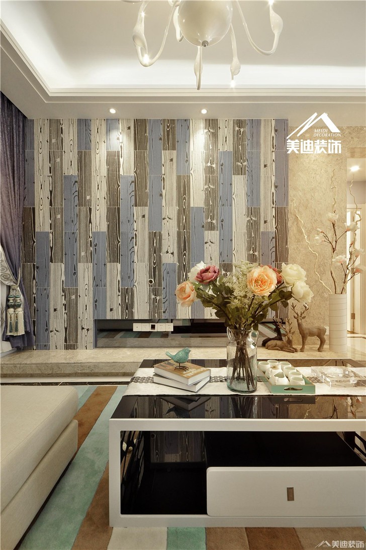 客廳是一家人待的最多的地方,有一扇窗戶,白天的時候客廳看起來就很明亮。墻面選用的墻漆和墻紙搭配起來的,茶幾的獨特造型,看起來很是大氣。