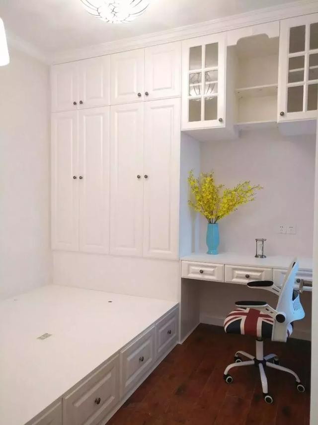 最適合小戶型的書(shū)房設(shè)計(jì)就是利用次臥的空間來(lái)做個(gè)榻榻米書(shū)房,單人床的榻榻米大小,加上組合式的衣柜和書(shū)桌柜,非常實(shí)用。