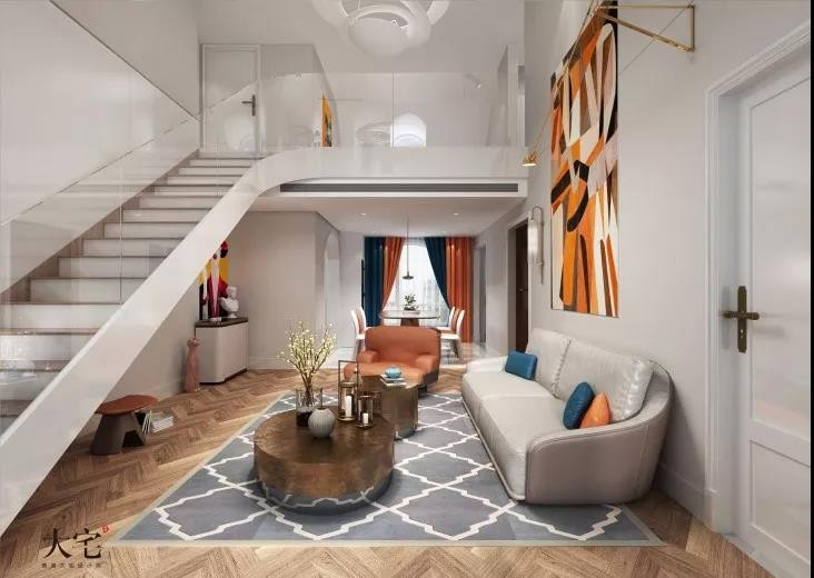 這是世茂外灘里的業主美家,他特別注重室內的空間感。設計師將客廳、餐桌及辦公地點三者合為一體,沒有滿滿的實物進行間隔,要的只是滿足居住者的那種自由。