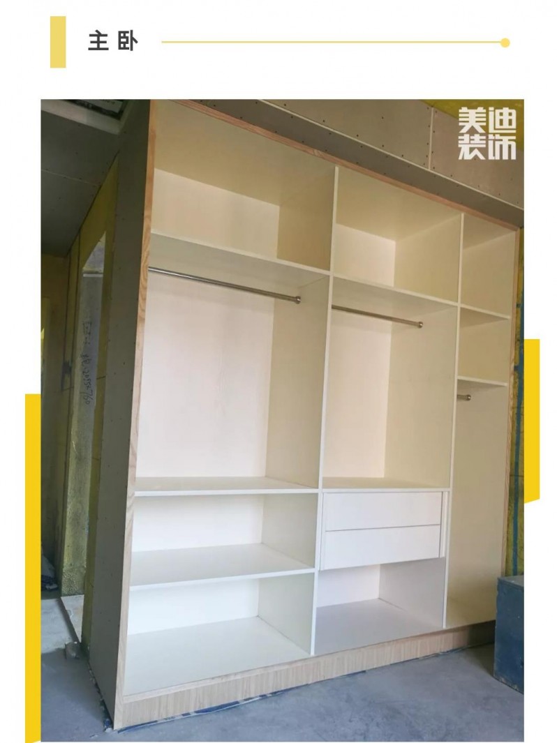 每個家里都少不了儲物柜,尤其這戶所有的木制品,比如衣柜、鞋柜等都是現場制作的,小Y只能說,考驗木工手藝的時候到啦。如果做工不好就會影響房屋的一個整體美觀。