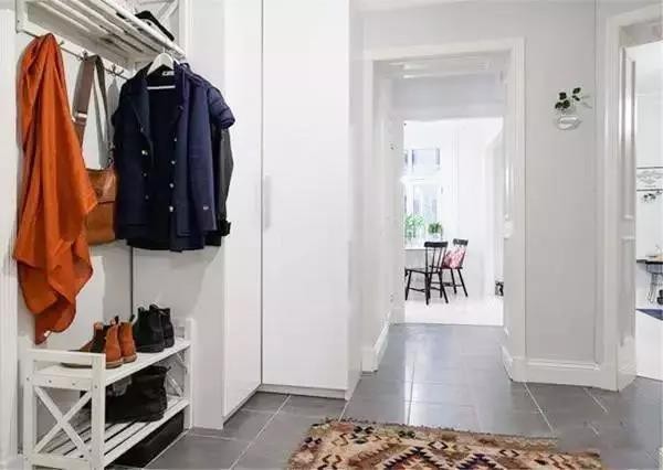 在進門處也可以設計出一塊屬于衣帽間的小天地,其實非常方便進門以及出門的時候在門口處整理自己的著裝。