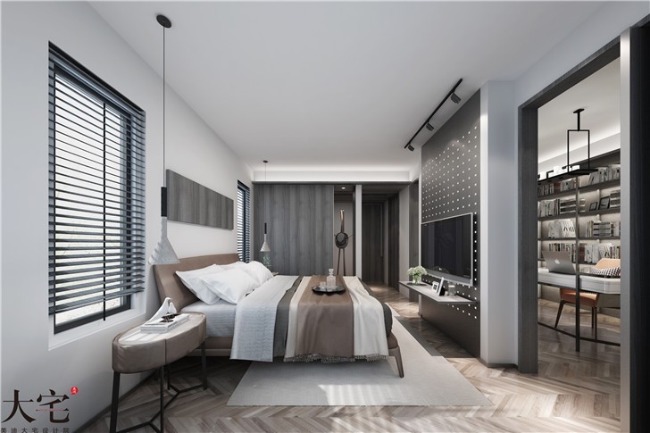 小套復式樓的層高一般較低,不宜選用飽和度、明度較高的鮮艷顏色,應盡量以簡潔的顏色為主,白色、米色都是適宜搭配、擴大空間視覺效果的顏色。同時也可使用黃色、綠色等明亮的顏色作為點綴,增強空間的活力。