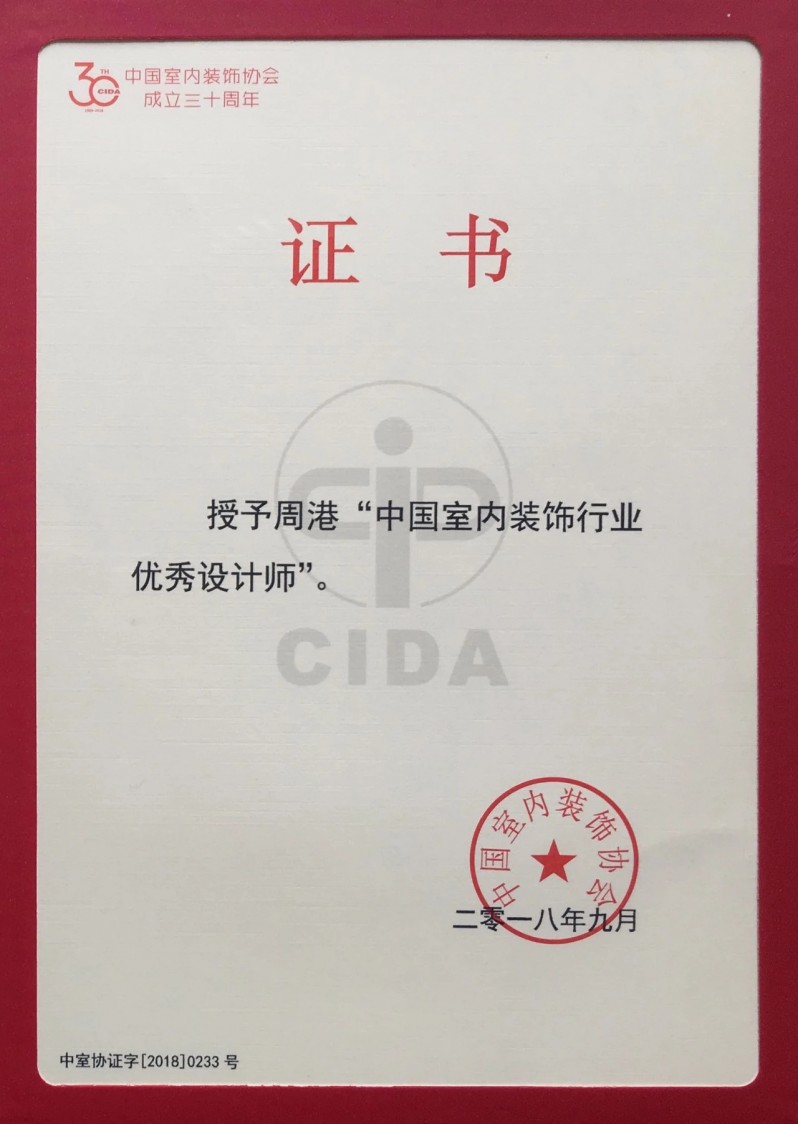 △ 美迪裝飾總店設計總監 周港獲得“中國室內裝飾行業優秀設計師”獎