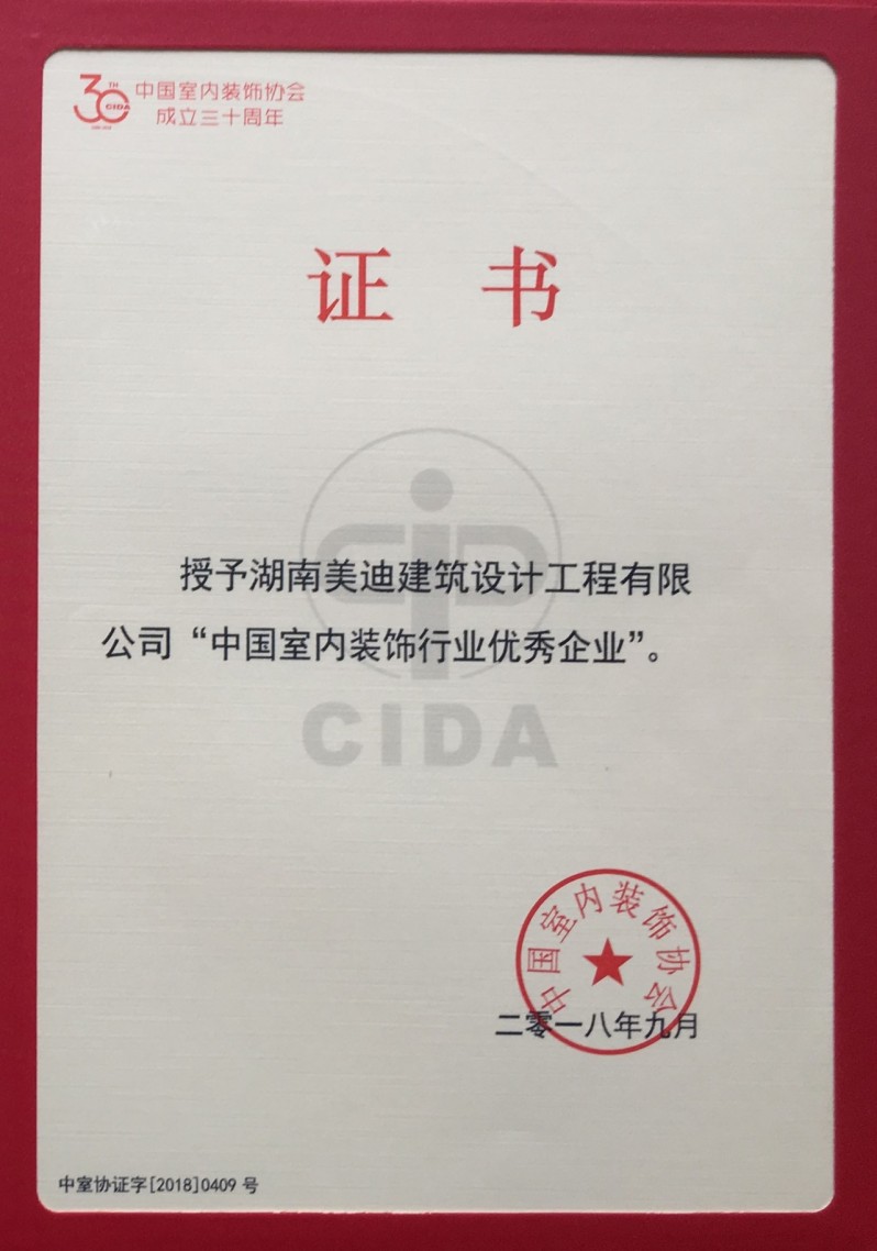 表彰大會對獲得中國室內裝飾行業優秀企業、優秀設計師、優秀協會的先進單位和個人進行隆重表彰,美迪裝飾再次榮獲“中國室內裝飾行業優秀企業”!