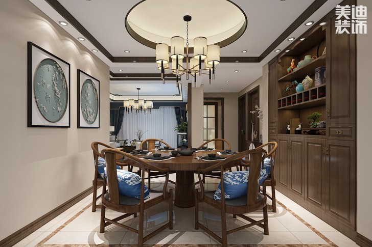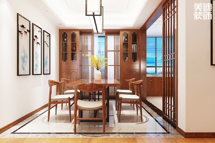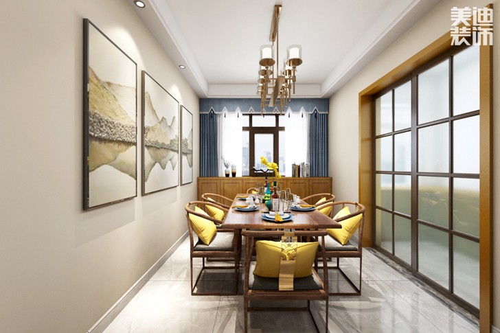 新中式餐廳風格講究對稱、簡約、樸素、格調雅致、文化內涵豐富,同時也體現主人的較高美情趣與社會地位。
