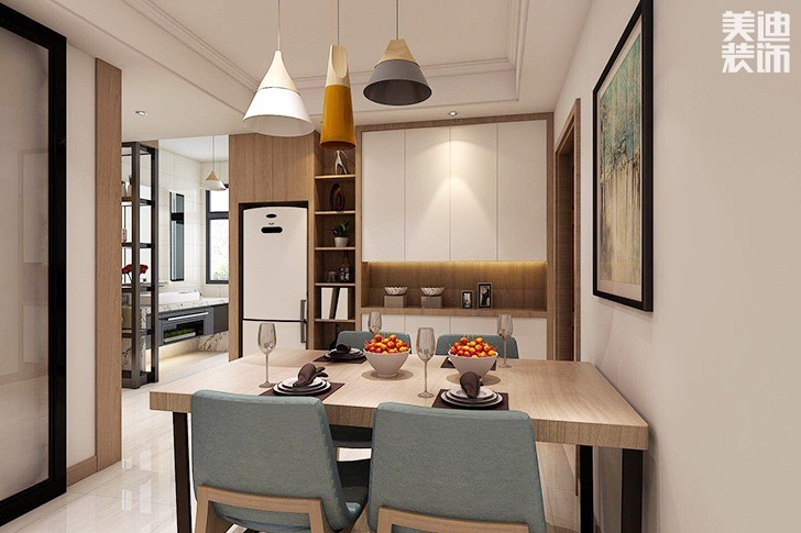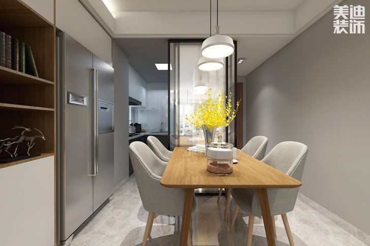餐廳與廚房開放式的設計更符合現代年輕人的生活式,更加時尚,也增加了整體空間的寬敞舒適度