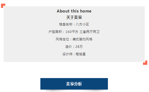 本期《美家記》的案例作品是業主彭先生的父母為他準備的婚房,現在是彭先生和愛人一起居住。設計師程繼星為他們打造了一套美式簡約風格的三居室溫馨愛巢,整體給人一種簡約大氣的氣息,沒有繁復的空間布局,卻很抓眼。