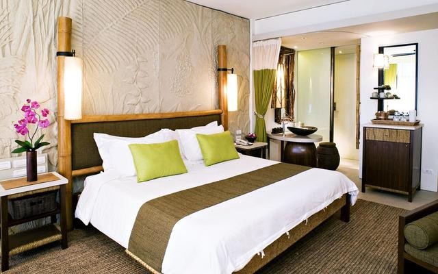 采用簡潔和素雅的裝修,帶有線條的裝飾。臥床背景墻是用實木砌成的木墻,橫向紋理,宛如水波般柔和,天花板也異曲同工。窗簾也選擇了豎條褶皺紋理,與橫紋垂直呼應,整個臥室線條感特別的強烈,讓人感覺清爽而富有魔力!是很多都市男女喜歡的一款臥室裝修!