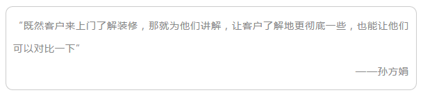 當(dāng)被問及到“如何提升業(yè)績”,孫方娟認(rèn)為需要感謝網(wǎng)銷與營銷人員前線的付出:聯(lián)系客戶、約客戶上門等事情,后期的接待結(jié)果不僅僅是個人的努力,更是整個團(tuán)隊(duì)合作的結(jié)果。