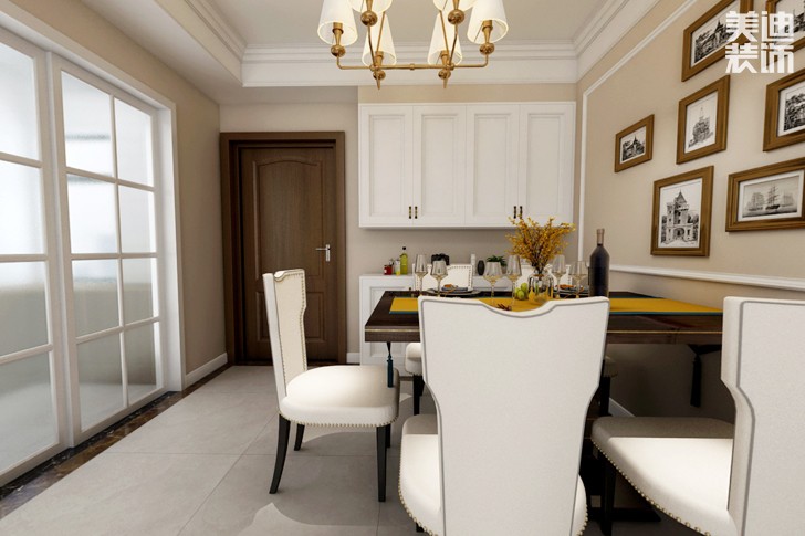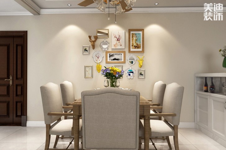 簡單而不失風味的餐廳存在著無處不在的記憶。簡單又明快,仿佛遠離城市的喧鬧,享受屬于倆口的寧靜,舒服的用餐。餐廳區域延續了客廳淡土黃色的墻面,整個空間給人淡雅,放松的感覺。