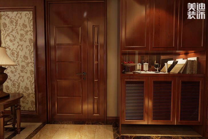 客廳設計具有美式風格的大氣典雅,同時帶有些許時尚簡約感,空間以原木色為主調,搭配米色的家居裝飾,營造出精致、清爽的空間氛圍。