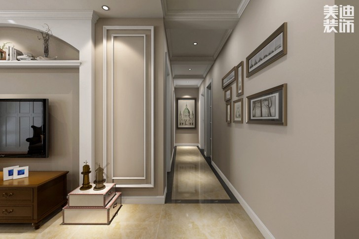 米色的沙發背景墻,清爽又不失大氣,現在很多人喜歡墻面刷成這樣;從這個角度還能看到玄關做了嵌入式的收納柜,不僅美觀還實用。