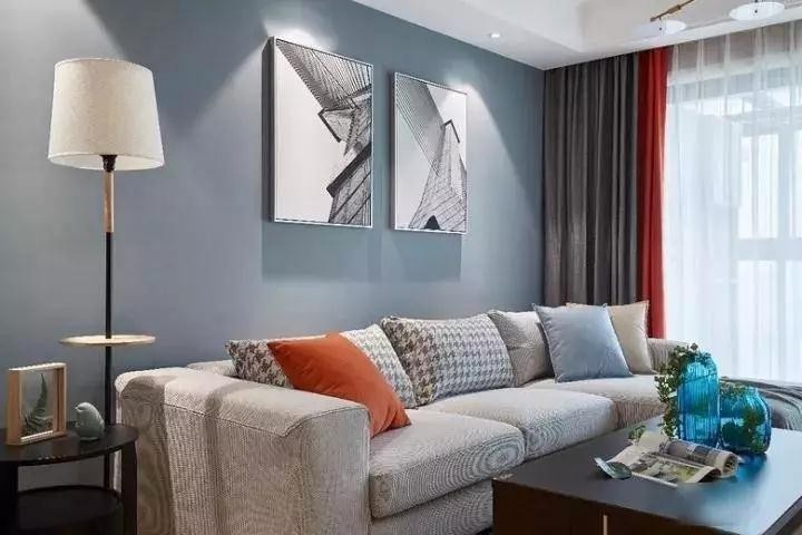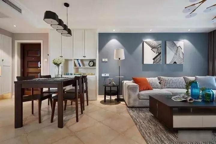 客廳背景墻是宜家風(fēng)最受捧的灰藍(lán)色調(diào),搭配繪有年輪圖案的米色布藝沙發(fā),輕松愉悅又非常的溫馨,給人以家的感覺,茶幾選擇了與餐桌一致的深咖色,在綠植和藍(lán)色玻璃瓶的襯托下,讓整個客廳雅致清透不少。