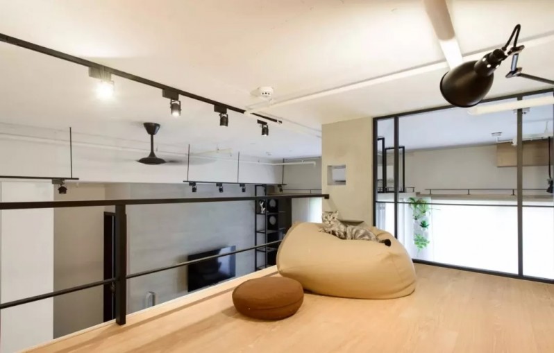 為了能夠有更多的活動空間,設計師對房屋進行了改造,在廚房的上方增加了一個簡易的書房,看起來個性時尚。