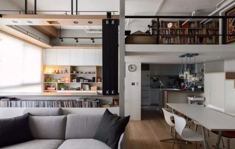 這套房子總共70平米,戶主為了能夠有更多的活動空間,對房屋進行了復試改造,在廚房的上方增加了一個簡易的書房,看起來個性時尚。