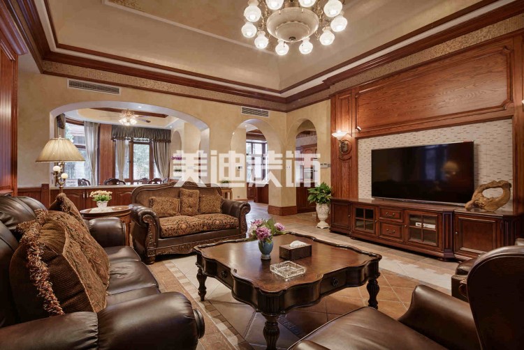 殖民地風格的代名詞,強調包容性,可以容納多種特點,雜糅各種風格,因此美式風格常令人感到寬大、舒適。顏色上以明快的光鮮為主,泛黃的裝飾、做舊的設計,好像一幅鄉村風景油畫。